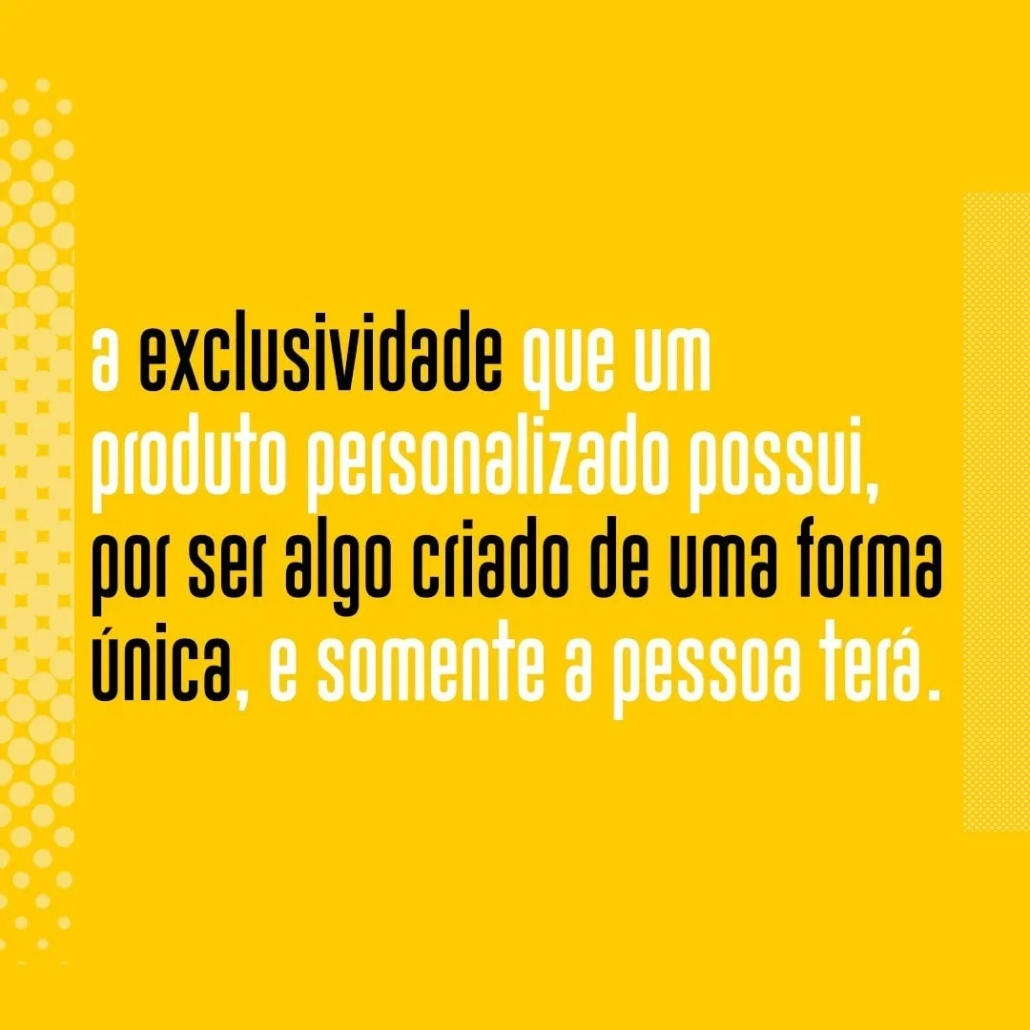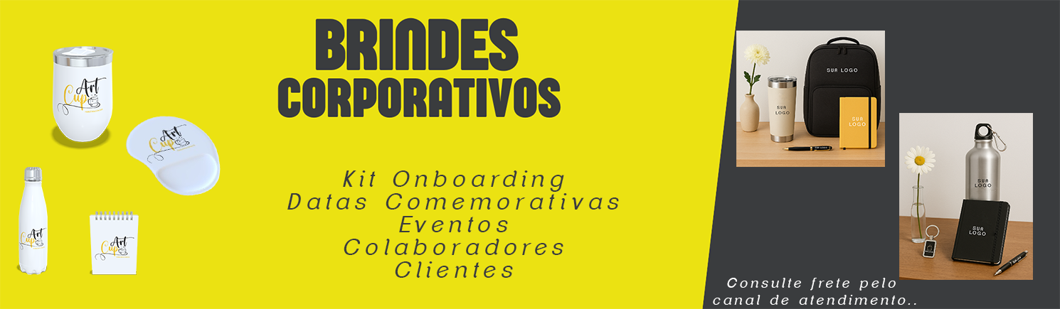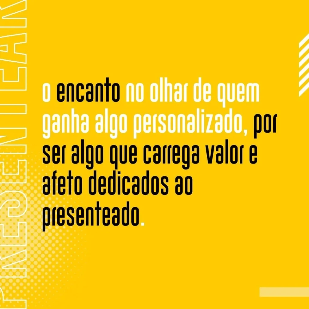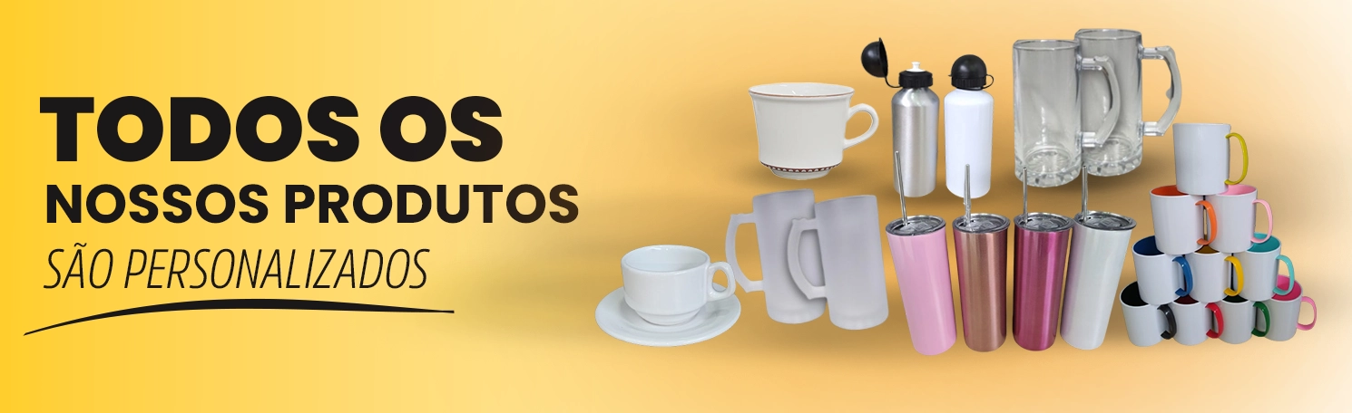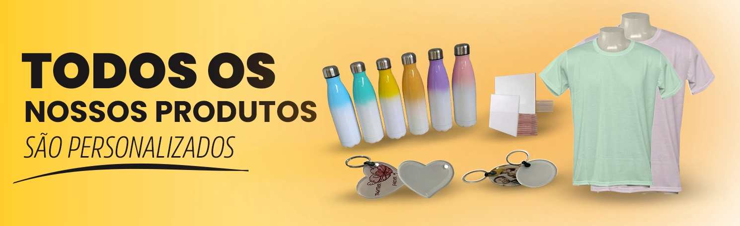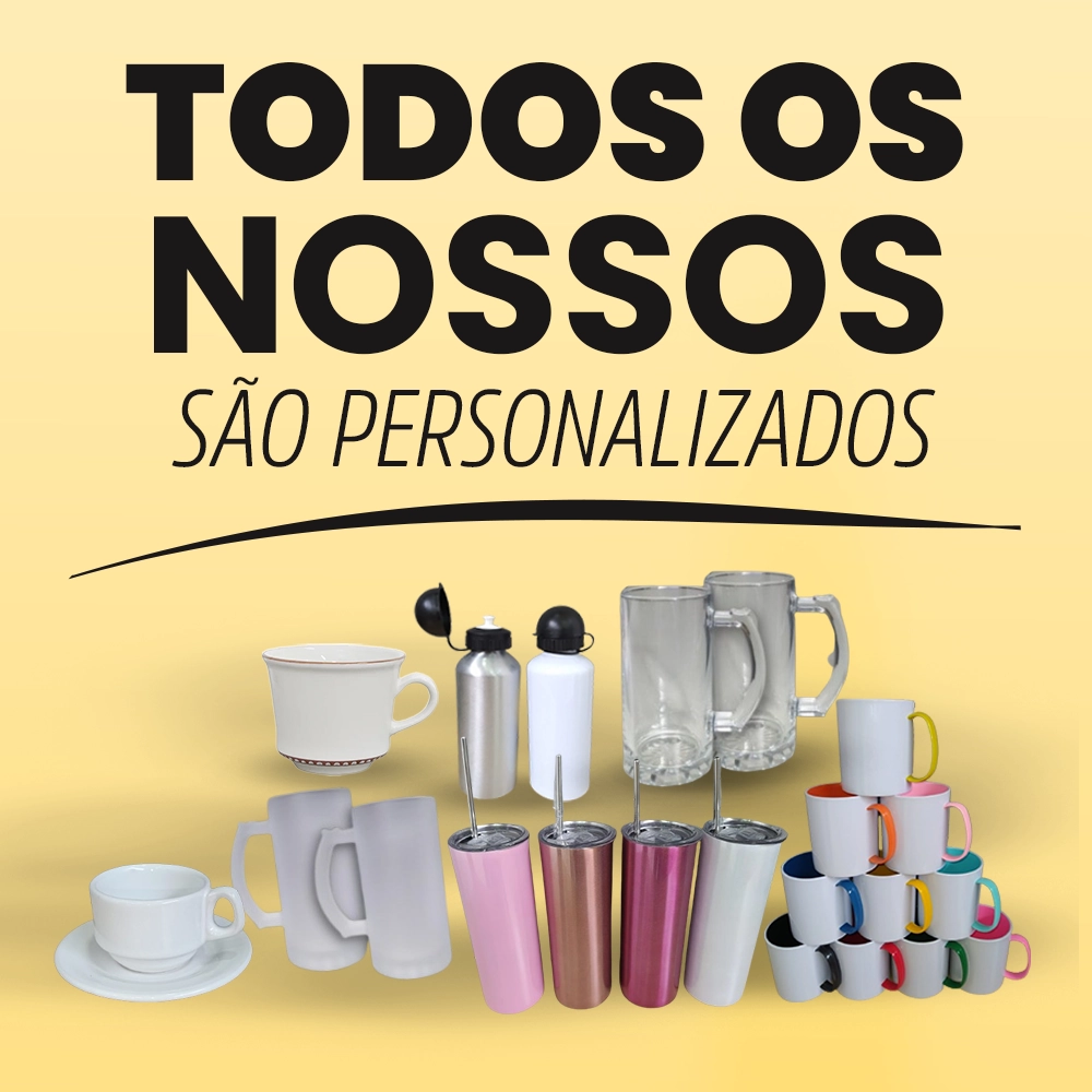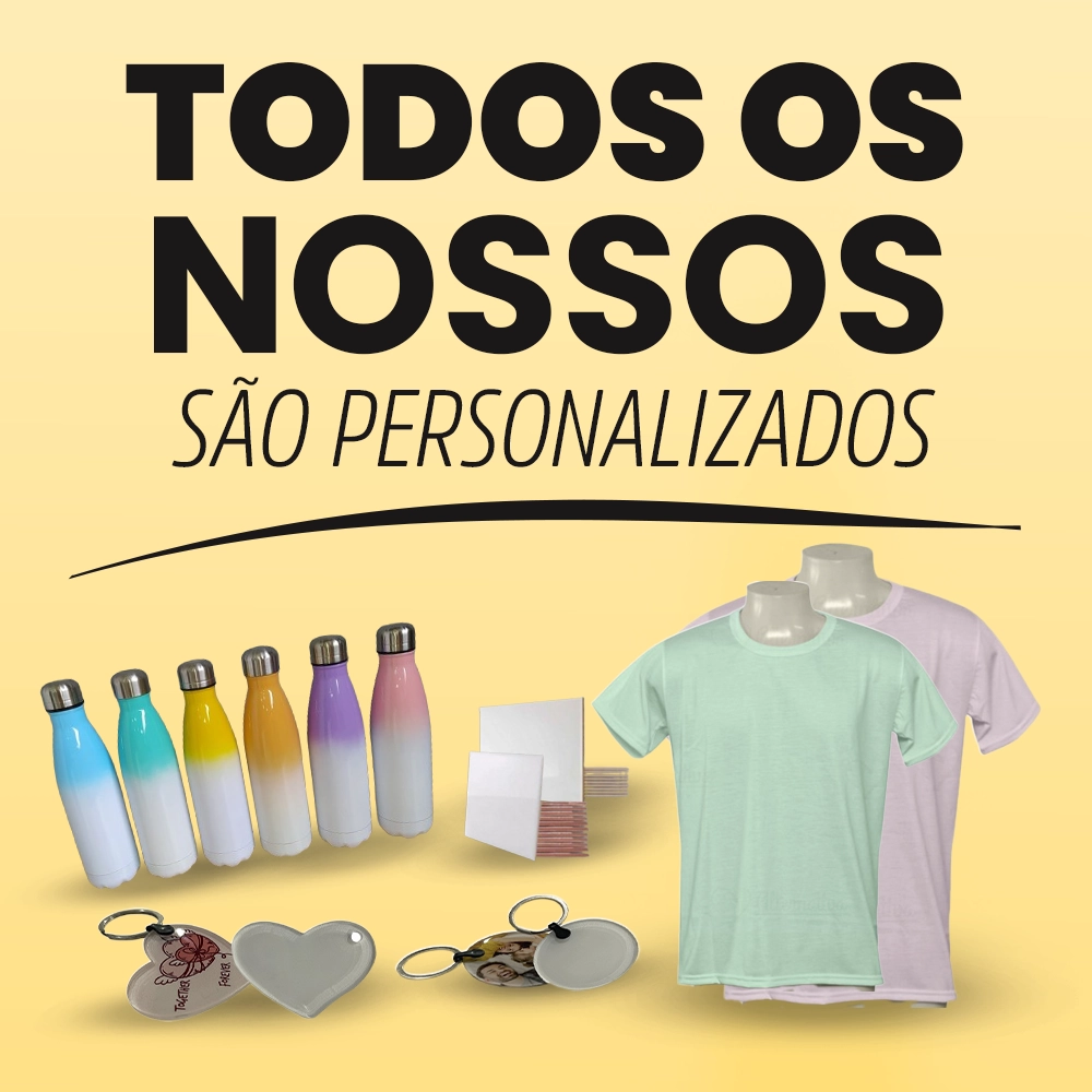Oferecemos uma ampla variedade de itens, como canecas, squeeze, vestuário, decoração e papelaria, todos personalizados para atender às suas necessidades. Nosso compromisso é com a qualidade e a satisfação do cliente, garantindo produtos que superam suas expectativas.