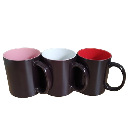 • Caneca de Cerâmica Branca com Alça Soft e Base em Silicone com Interior Colorido.